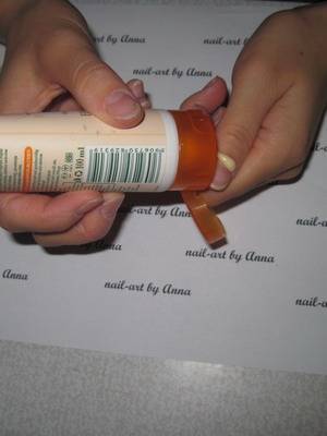 - Нанесение средства для удаления и смягчения кутикулы. Этот препарат наносит на кожу возле ногтей. Время его действия указано на упаковке. В среднем, достаточно 45-60 секунд, чтобы состав подействовал.