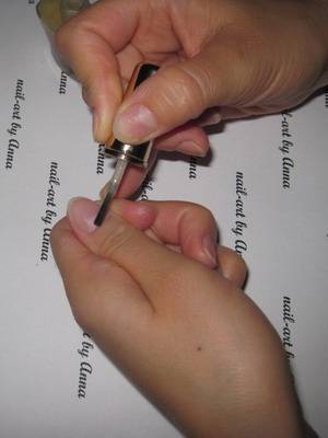- Нанесение масла на кутикулу. Массажными круговыми движениями нанесите на кутикулу специальное масло. Смажьте руки кремом. Отдохните 10-15 минут и обезжирьте ногтевые пластинки ватным тампоном, слегка смоченным в жидкости для удаления лака.
