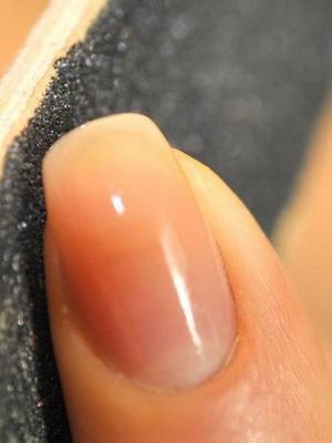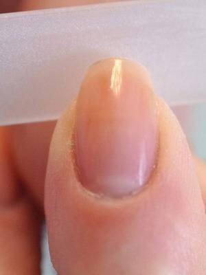 Часто под воздействием гель-лака и акрила на ногтях появляются волнистые бороздки, прямые полосы. Чтобы избавиться от этих неровностей отшлифуйте поверхностей ногтевой пластины стеклянной пилочкой. Для более бережного ухода за ломкими ногтями воспользуйтесь специальным бафом.