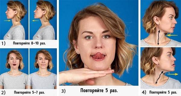 Главная задача комплекса – помочь убрать второй подбородок. Мышцы нижней части лица легче привести в тонус, чем средней части. Спустя неделю будут заметны первые сдвиги.