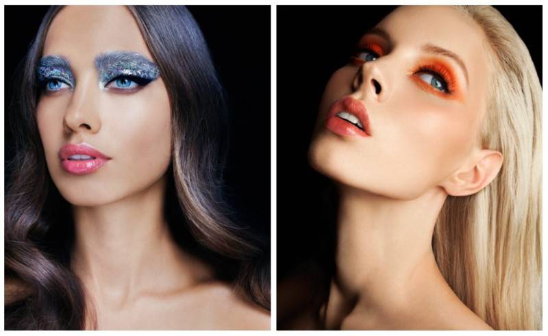 В зависимости от творческой задачи и идеи коллекции, визажисты используют различные средства декоративной косметики, разные техники. Используют тени для век ярких тонов, могут быть большие стрелки вокруг глаз – черные или контрастных цветов.