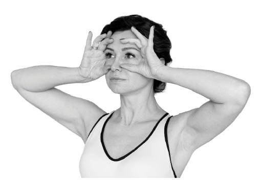 - Положите руки на лицо таким образом, чтобы они закрывали кожу под бровями, под глазами и верхнюю часть щёк;