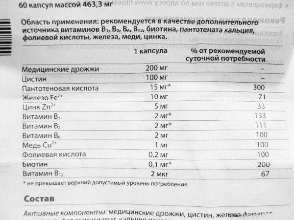 В состав капсул входят: аминокислина цистин – это основной компонент кератина волос , медицинские дрожжи – природный источник аминокислот, минералов и витаминов группы В. Витамины и минералы запускают важнейшие метаболические процессы в корнях волос.
