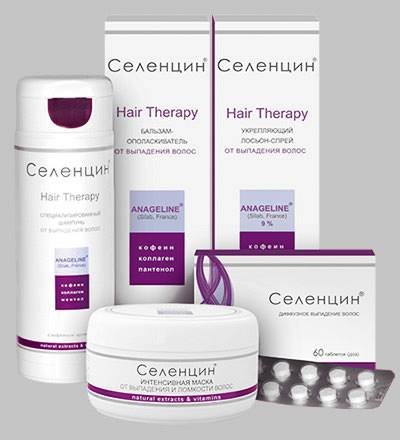 Состав шампуня Селенцин: протеины (ускоряют рост волос, обновляют клетки, помогают улучшить плотность волос), биотин (ускоряет рост волосков), кофеин (способен улучшать кровообращение, хорошо удерживает влагу, тем самым помогает предотвратить выпадение и волос), растительные экстракты (восстанавливают работу сальных желез и помогают бороться с перхотью) и силиконы.