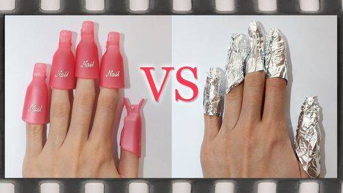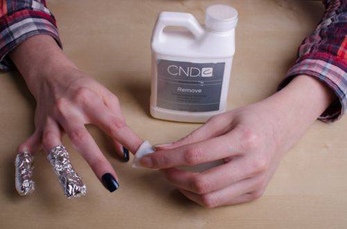 Иногда вместо фольги для снятия гель-лака используют пластырь, колпачки, маникюрные флакончики, в которые наливают ремувер и окунают пальчики на некоторое время. Весь процесс снятия старого покрытия с фольгой можно разделить на три основных этапа, каждый из которых можно выполнить в домашних условиях: