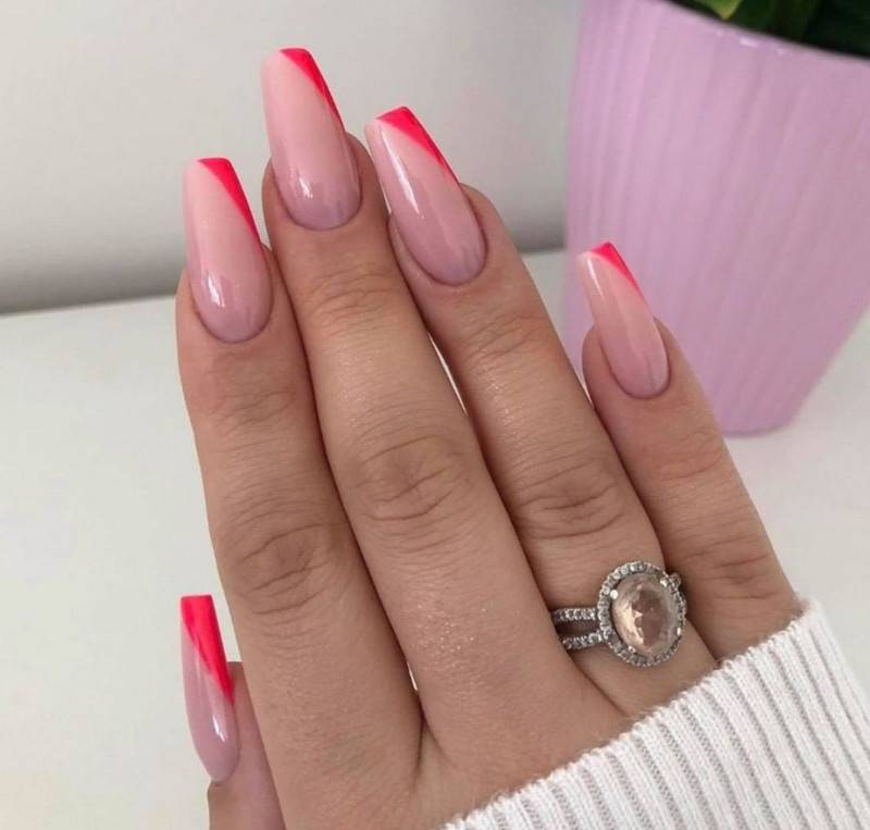 Если вы хотите визуально сузить внешний вид ногтевой пластины, выбирайте модную форму «балерина» или «пуанты». Этот тип ногтей является гибридом, чем-то средним между миндальной и квадратной формой.