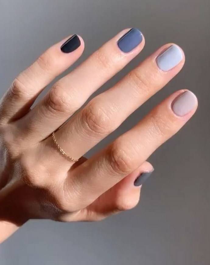 Лучше выделить один или два ногтя, а остольные оставить однотонными.