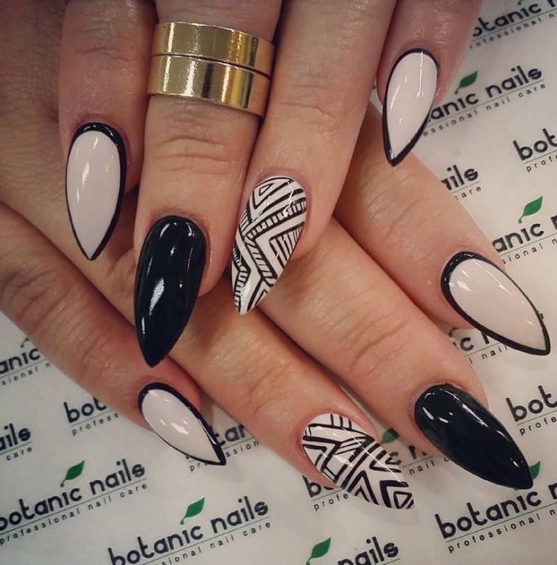 Готические стилеты, выполненные а-ля готика, отличаются строгой симметрией. Такие ногти не отличаются особой длиной, но дизайн может быть самым разным. Черные стилеты идеально подчеркнут образ женщины-вамп. Черный хорошо будет смотреться на френче, как на классическом, так и на обратном. Идеально украсят черные стилеты узоры и стразы. Стилеты в черной цветовой гамме выступят идеальным вечерним маникюром, а также подойдут для фотосессий в готическом стиле.