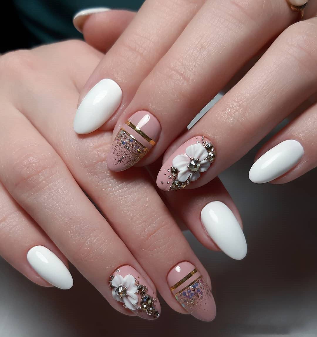 Более креативный и интересный вариант — миндаль, балерина. Причем эти дизайны смотрятся великолепно как на ногтях средней длины, так и на длинных.