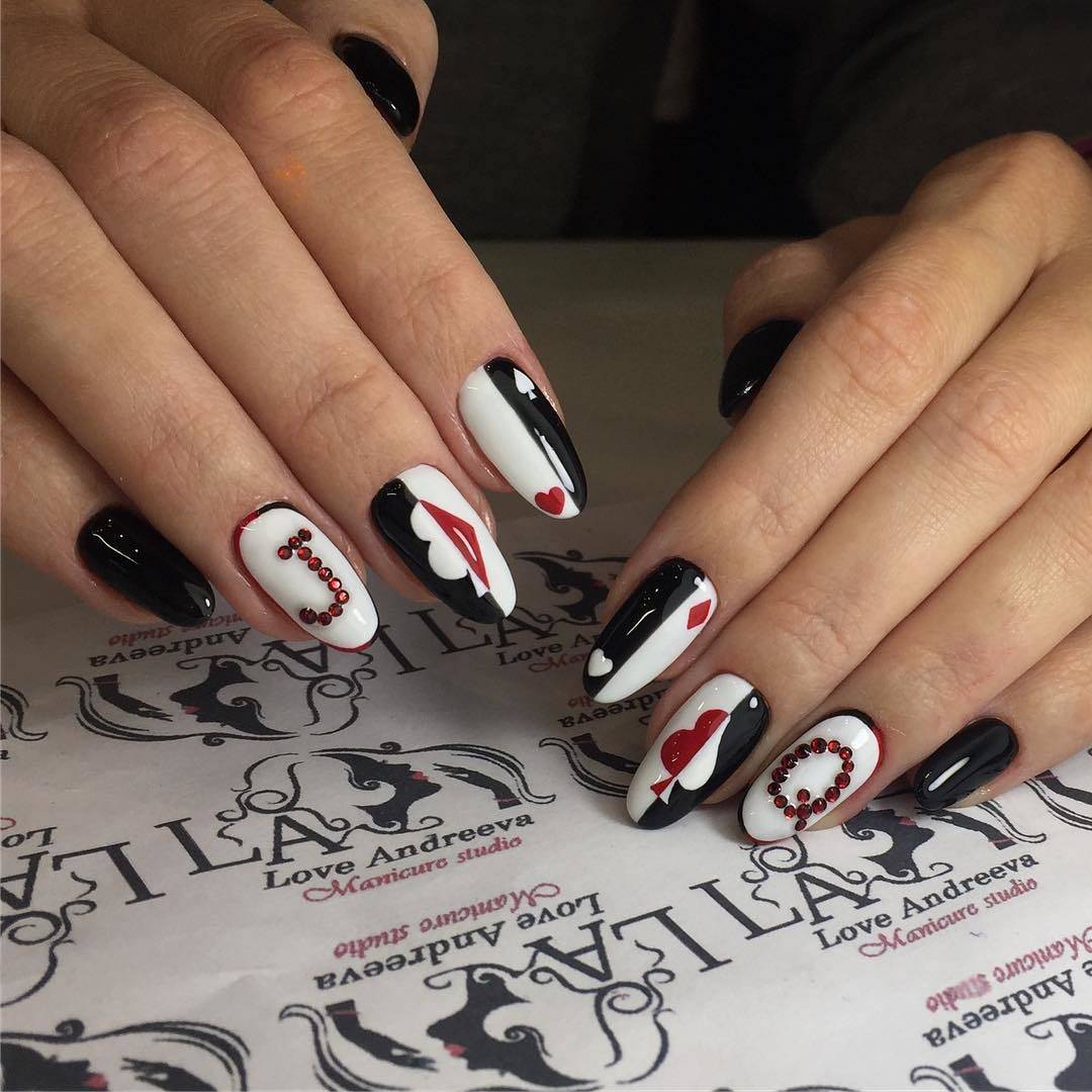 Такой вариант может довольно необычно выглядеть на ногтях-стилетах, не делая их слишком броскими, однако, безусловно, привлекая внимание к рукам