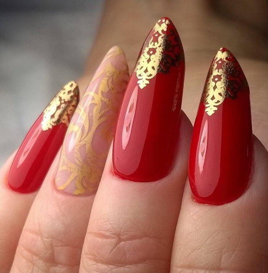 Для ногтей формы стилет подойдет практически любой дизайн. Однотонное покрытие, френч, втирка, кмбинация цветов, сложные дизайны-лепка, литье. Не стоит перегружать все ногти большим количеством декора.
