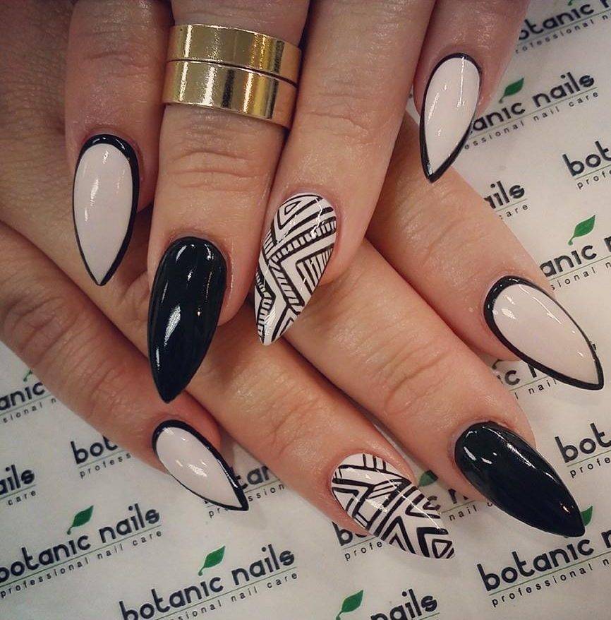 Маникюр на острые ногти всегда был эпатажным. Но, судя по фото, в этом сезоне его не пытаются сгладить, а наоборот всячески подчеркивают форму ярким и броским дизайном.