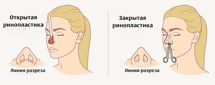 Ринопластика — операция по уменьшению носа, является травматичной и проводится только в стационаре. Средний срок пребывания в больнице после проведения операции составляет от 1 до 3 суток. Манипуляции в ринопластике могут проводиться двумя методами: