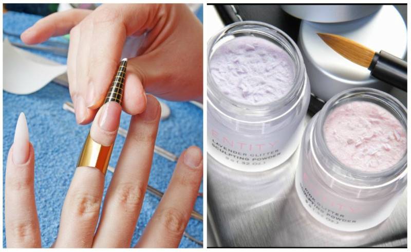 Для наращивания ногтей используется гель или акриловая пудра. Для моделирования искусственной ногтевой пластины применяются формы и типсы.