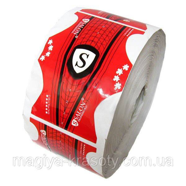 - Одноразовые формы. Их не нужно дезинфицировать, изготавливаются на бумажной или пластиковой основе, иногда на основе из металлической фольги с добавлением бумаги. Довольно широкие, они легко подойдут под любую ширину ногтя, а благодаря клейкой стороне, довольно надежно крепятся к пальцу. В продаже они обычно представлены в рулонах по 500 шт. Сравнительно недорогие и универсальные;