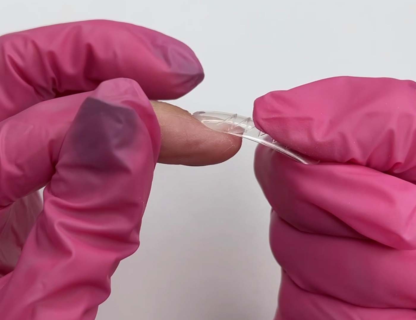 Мягкий материал, из которого они изготовлены, позволяет легко подогнать шаблоны под линию улыбки на нестандартных ногтях.