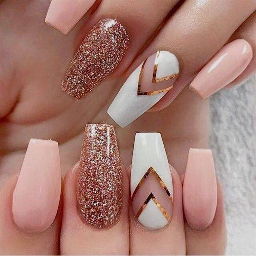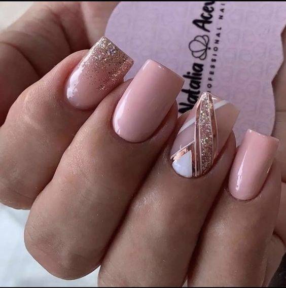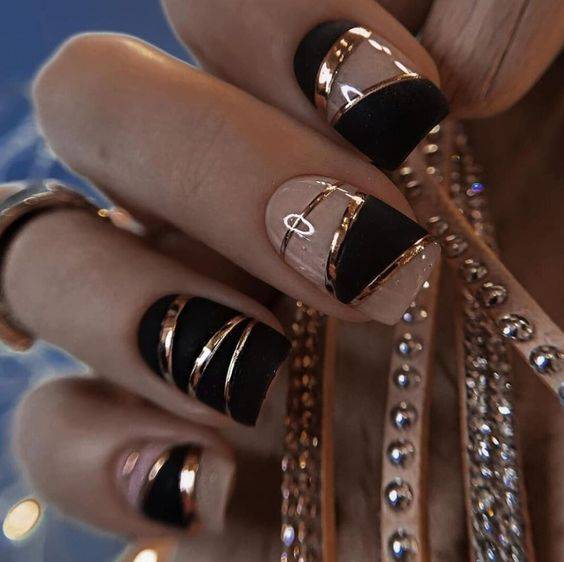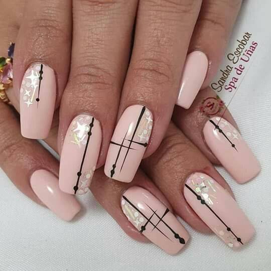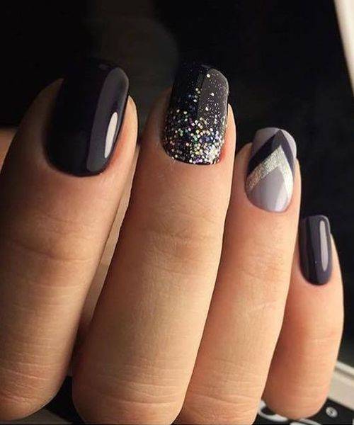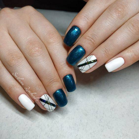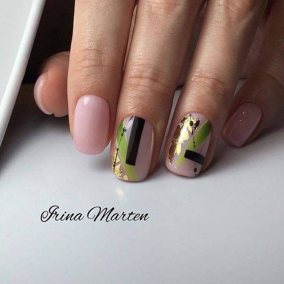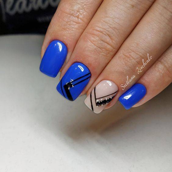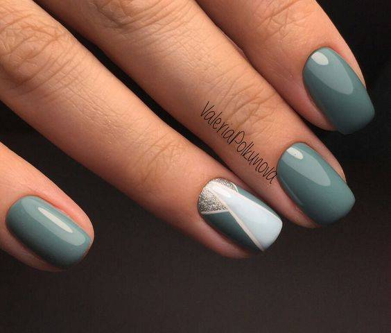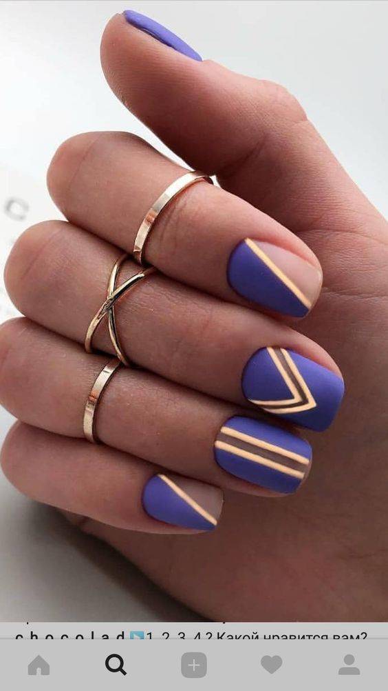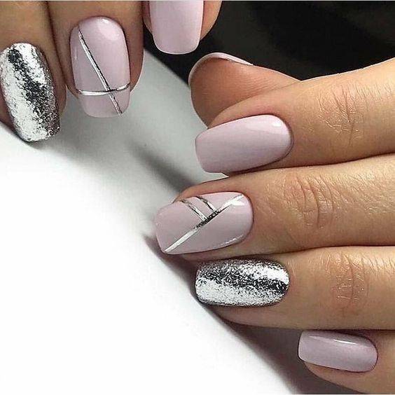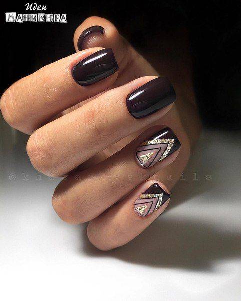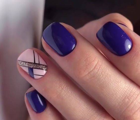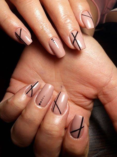 Ваша задача – выбрать наиболее подходящий оттенок лака, и дополнить его небольшими геометрическими линиями. Можно использовать фольгу, блестки, но в идеале декор должен быть неброским. Отличное решение для бизнес-леди!