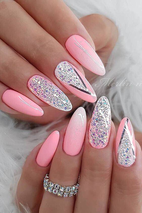 Миндалевидные ногти предполагают длинные стороны, которые сужаются, образуя закругленный кончик в конце. Эта роскошная форма не подойдёт коротким ногтям, но она прекрасно смотрится на более длинных. Форма идеально подходит длинным и тонким ногтям благодаря своей вытянутой форме. Миндалевидные ногти также подходит для коротких и широких пальцев, для придания видимости более тонкой руки. Кроме того, эта форма выигрышно смотрится у женщин с короткими пальцами благодаря дополнительной длине. Если вам подходит эта форма, попробуйте нейтральный и прозрачный лаки, а также гламурный и девчачий дизайны.