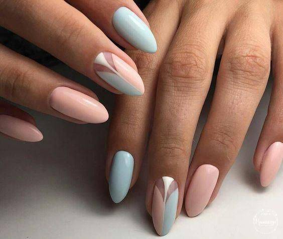 Один из видов нейл-арта в стиле геометрии называется «оригами». Базовый цвет – неяркий, на ногте несложная картинка. Маникюр изящный, однако, неброский. В качестве декора можно использовать простые полосы.