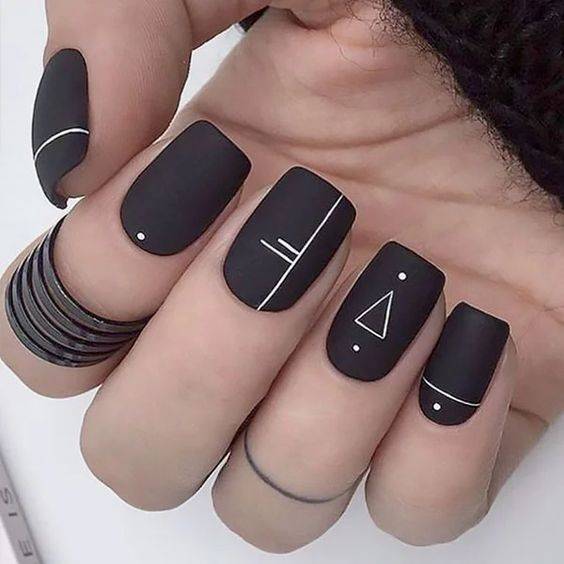 Вовсе не обязательно создавать и яркие рисунки, чтобы привлечь внимание к своим рукам. Геометрия в матовом дизайне уникальна