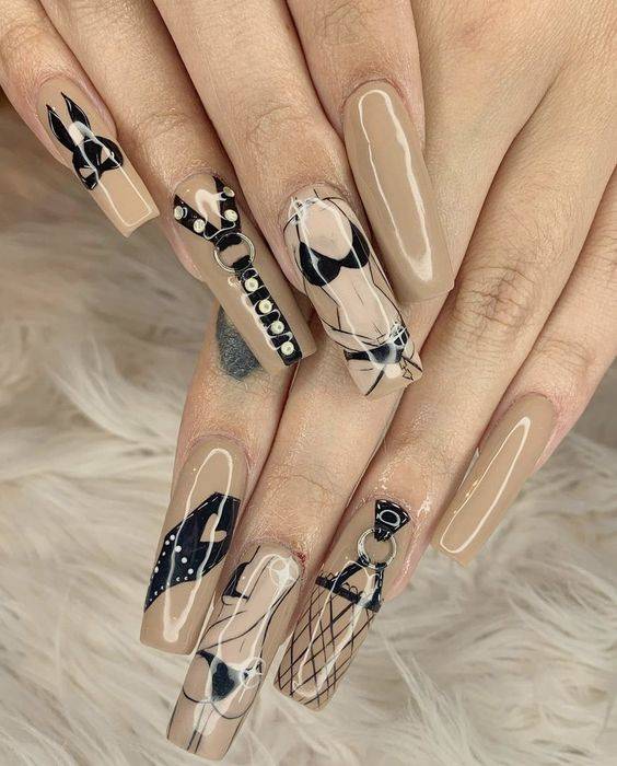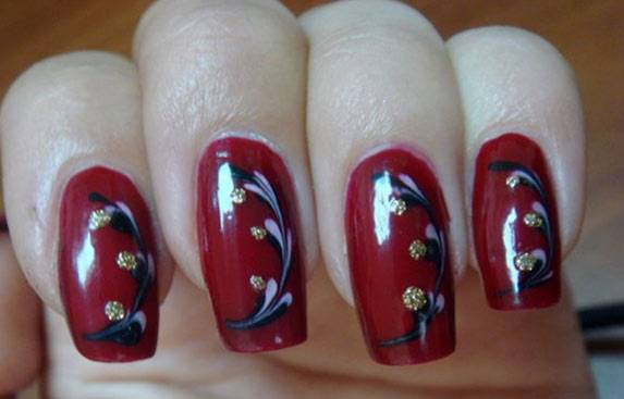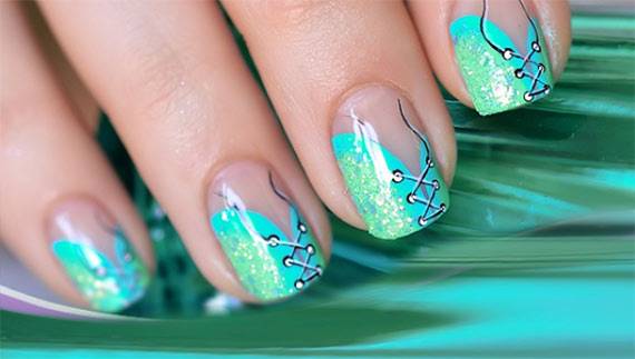 Ногти можно украшать лаками, блестками, стразами, гелями, золотыми нитками, кружевами, фольгой, красками (художественная роспись ногтей).