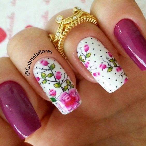 Цветок на ноготке выглядит нежно и романтично. Цветочный маникюр подходит женщинам любого возраста, не имеет ограничений по роду занятий. Цветочки могут быть крупными и мелкими, яркими и пастельными по оттенку. Они хорошо смотрятся на ногтях белого, розового, красного цвета.