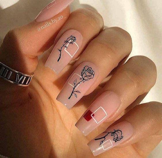 Классические рисунки на ногтях прекрасно сочетаются со строгим офисным стилем, делают облик женщины представительным и элегантным. Для основы лучше применять лаки нежных оттенков – на их фоне тёмные узоры выглядят потрясающе.