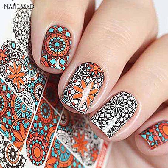 Рисунки распечатывают на специальных профессиональных принтерах для нейл-арта. Дает гарантию высокого качества даже самым замысловатым рисункам, обеспечивая одинаковые рисунки на всех ногтях.