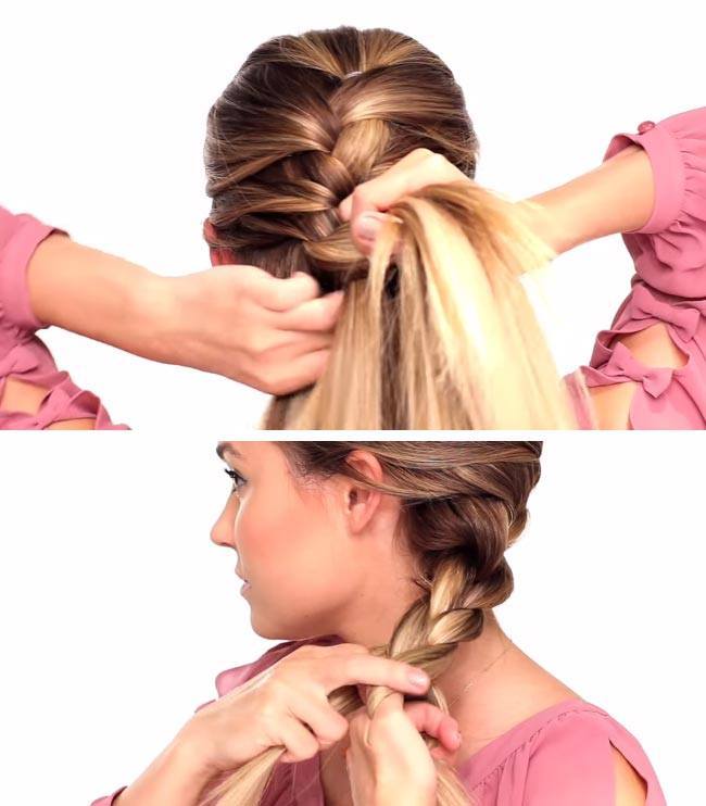 Как видите, этот вариант несложен, но перед его выполнением будет плюсом, если вы попрактикуетесь и научитесь плести классическую косу-жгут и французский вариант такой прически.