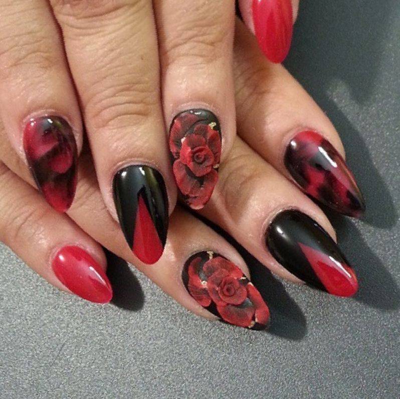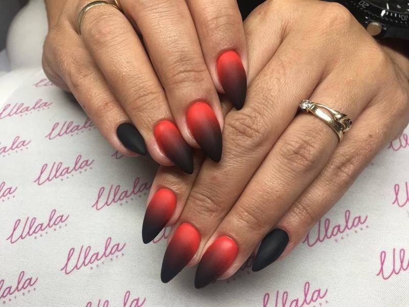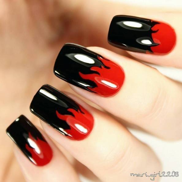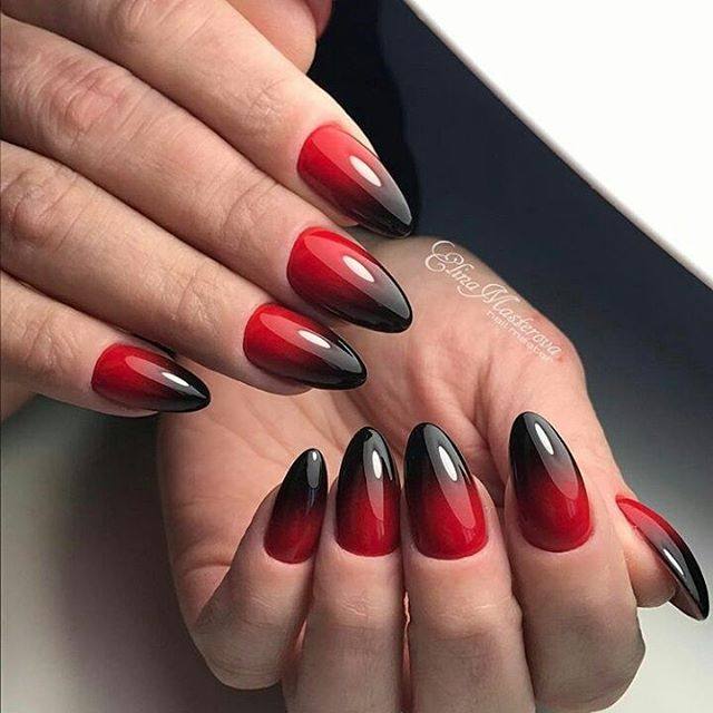 Однако черно-красный френч это довольно вызывающее сочетание. И именно акцент на одном цвете поможет сгладить излишнюю агрессию. Равномерное распределение цветов – вариант для очень смелых барышень, не боящихся эпатажности в образе. Сгладить вызывающий эффект поможет умело подобранный дизайн. Так, например, черно красный френч в вариации градиента – плавном переходе от одного цвета к другому – нивелирует контрастность двух ярких отеков за счет создания общего тона.