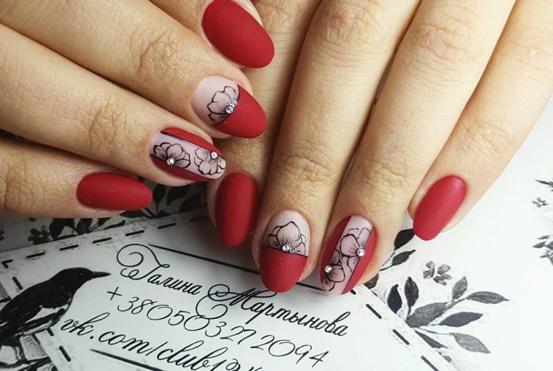 красный маникюр с рисунком
