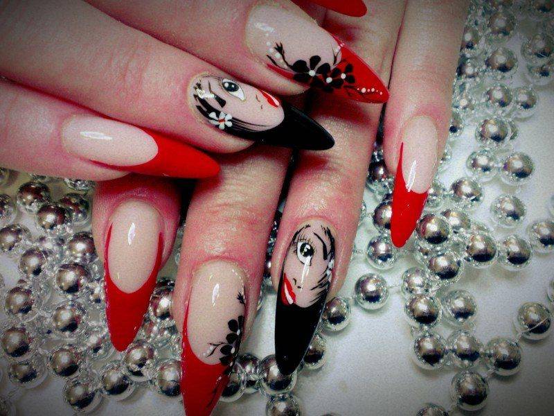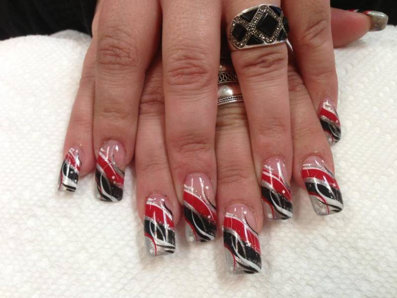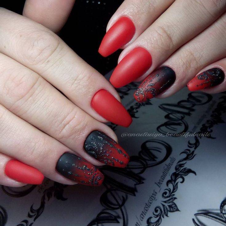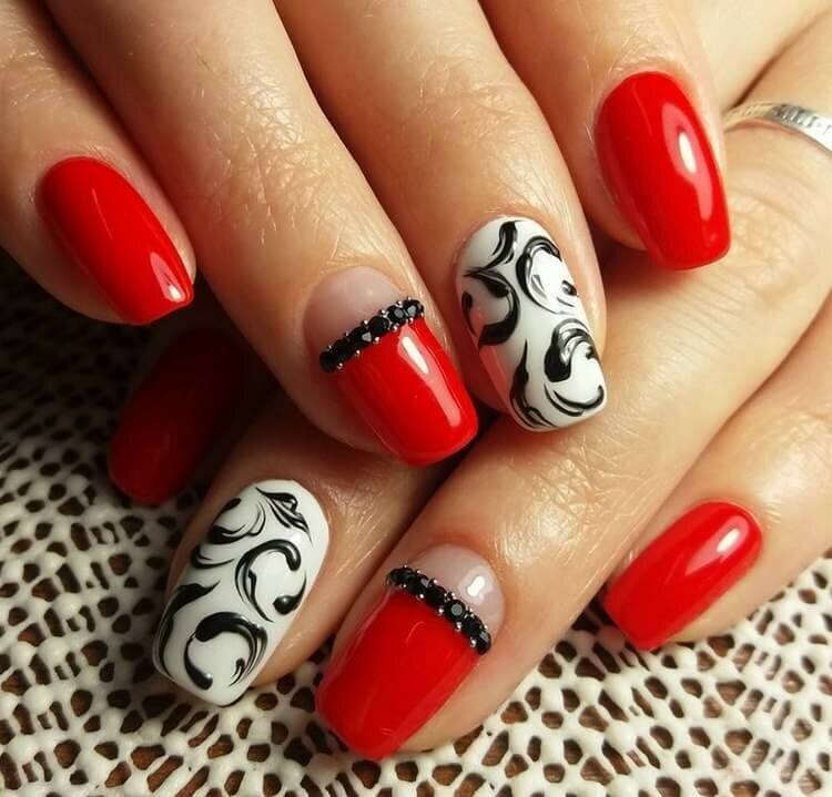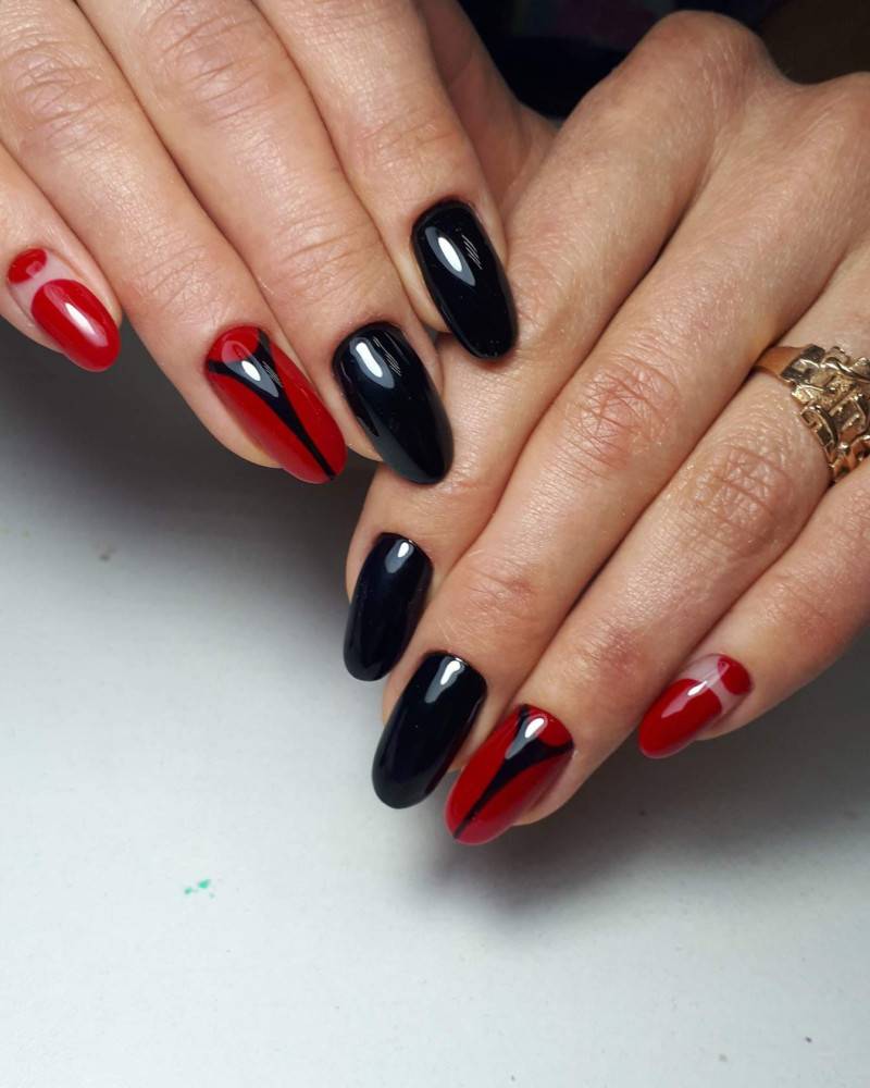 красный маникюр с черным цветом