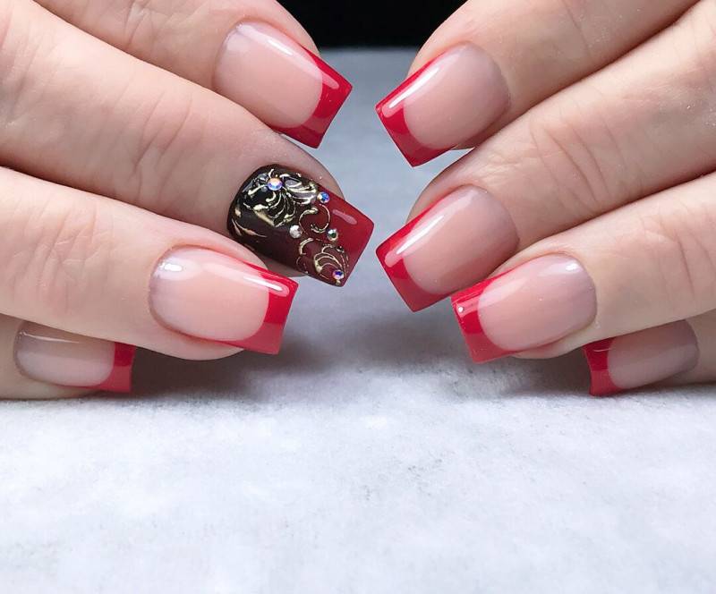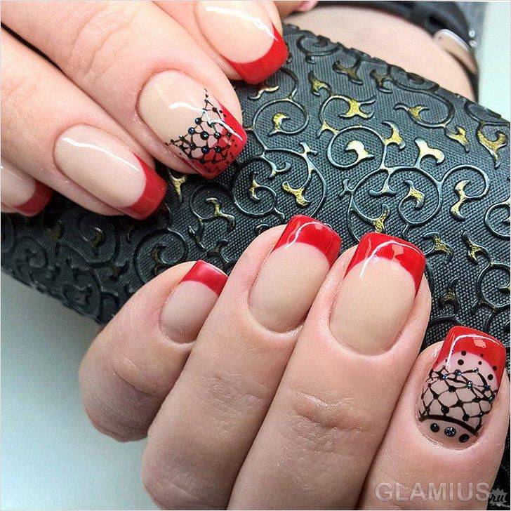Дизайн ногтей с красным френчем