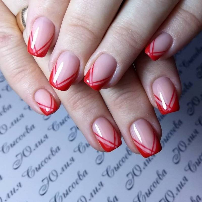 красный маникюр с линиями