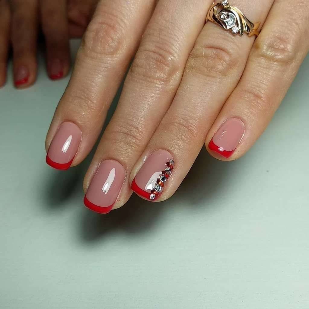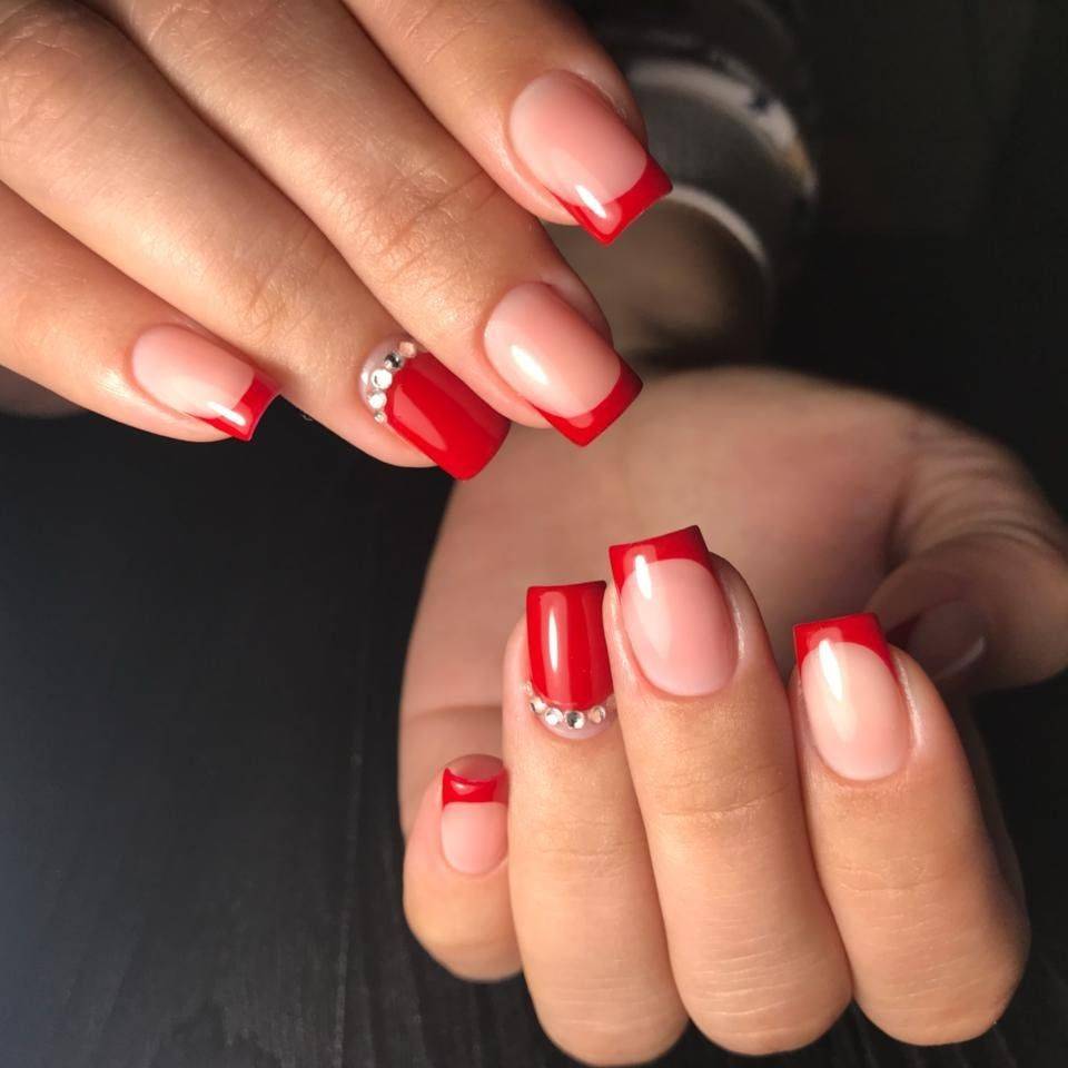 Дизайн ногтей с красным френчем