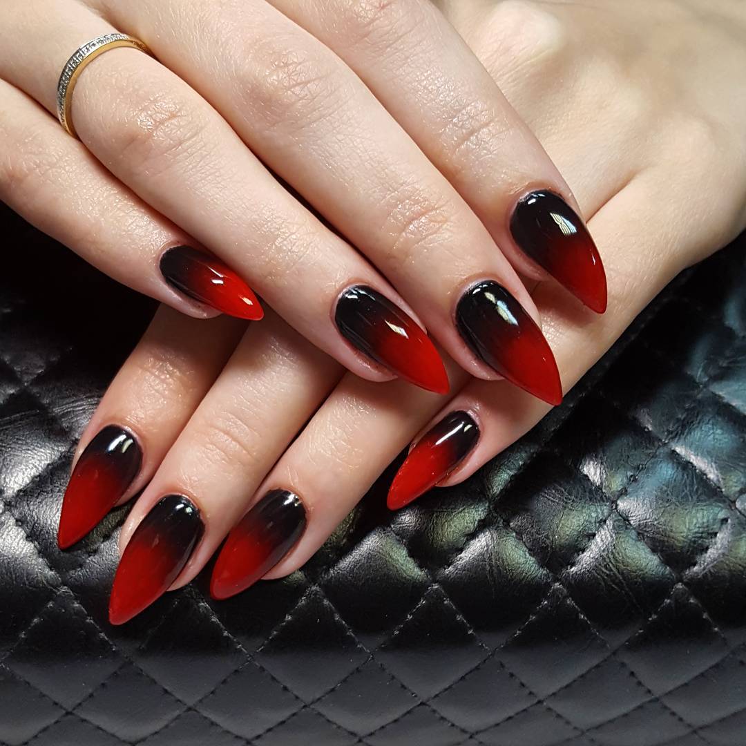 Однако черно-красный френч это довольно вызывающее сочетание. И именно акцент на одном цвете поможет сгладить излишнюю агрессию. Равномерное распределение цветов – вариант для очень смелых барышень, не боящихся эпатажности в образе. Сгладить вызывающий эффект поможет умело подобранный дизайн. Так, например, черно красный френч в вариации градиента – плавном переходе от одного цвета к другому – нивелирует контрастность двух ярких отеков за счет создания общего тона.