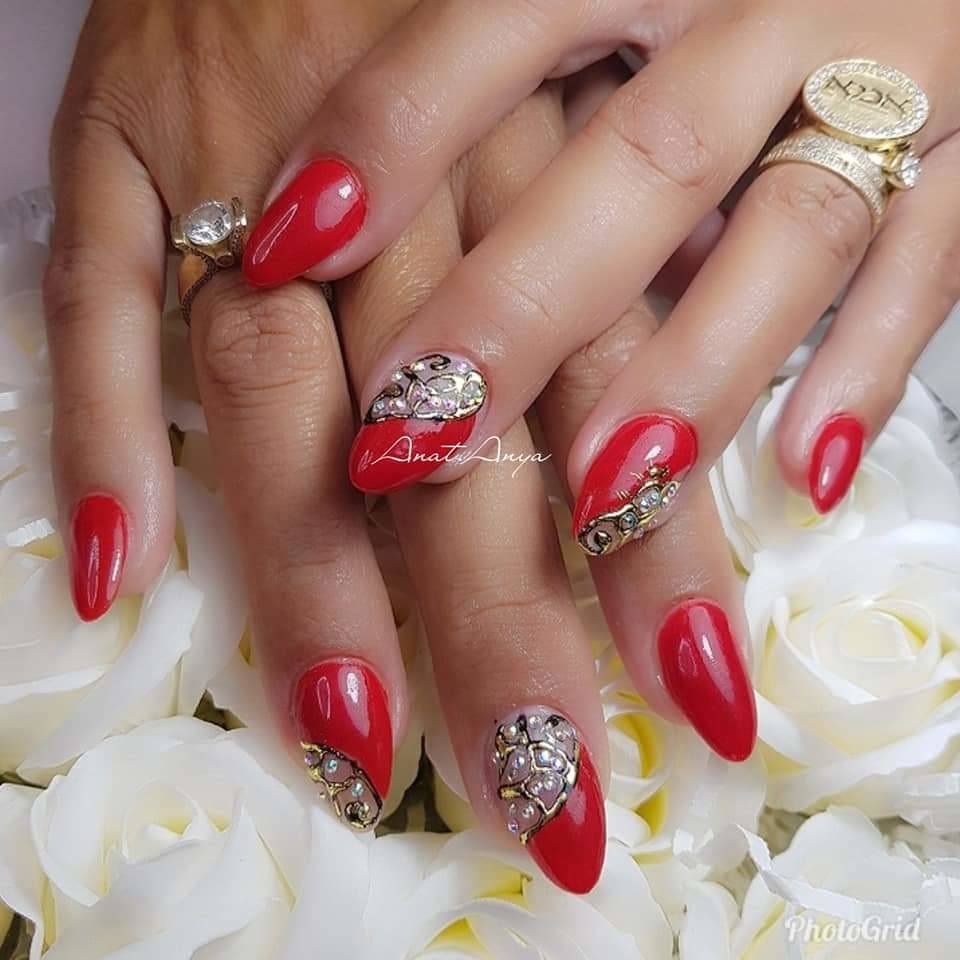красный маникюр с украшением