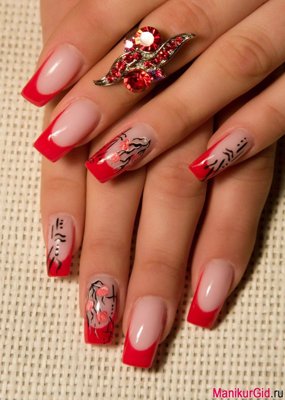красный маникюр с рисунком