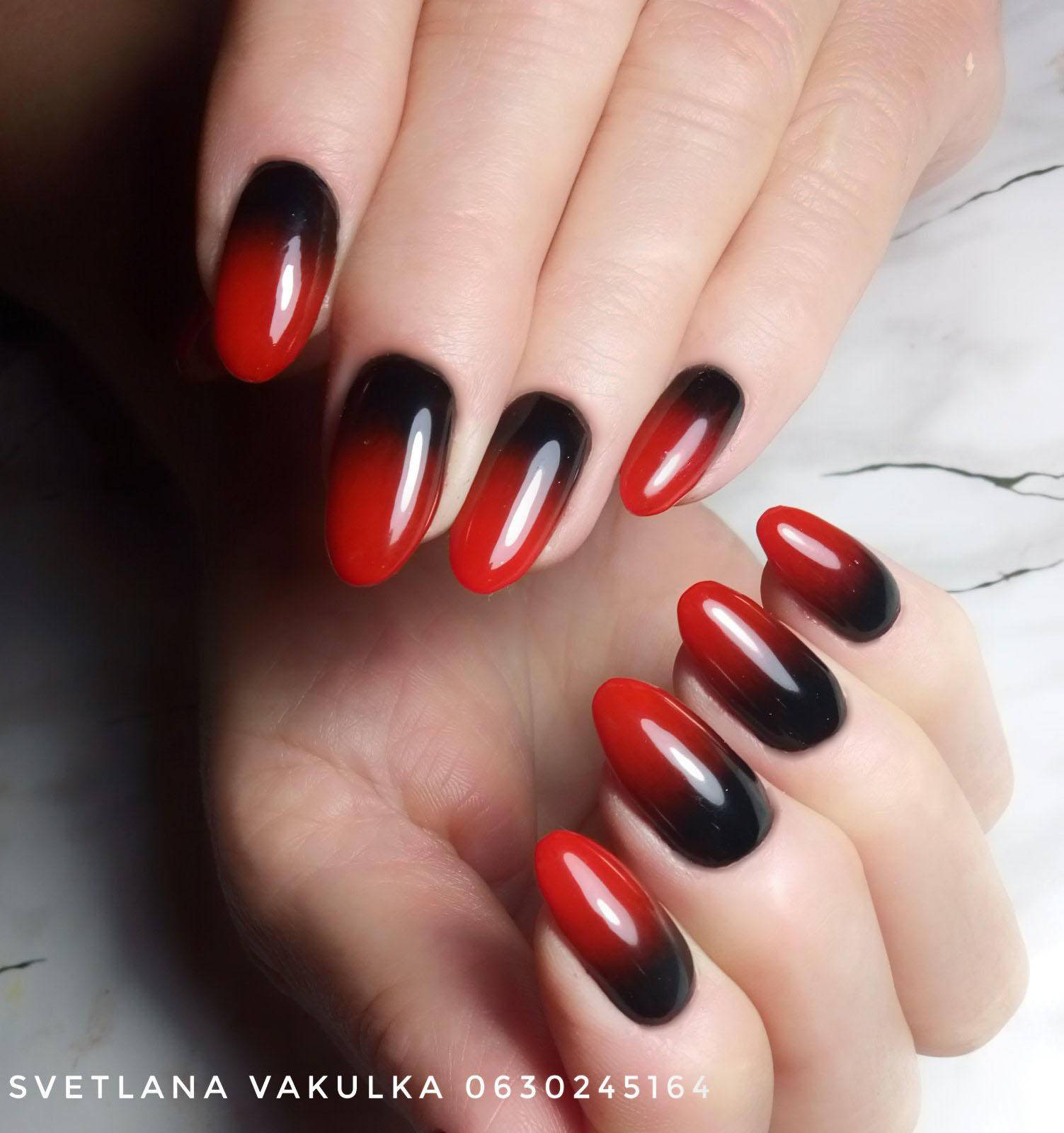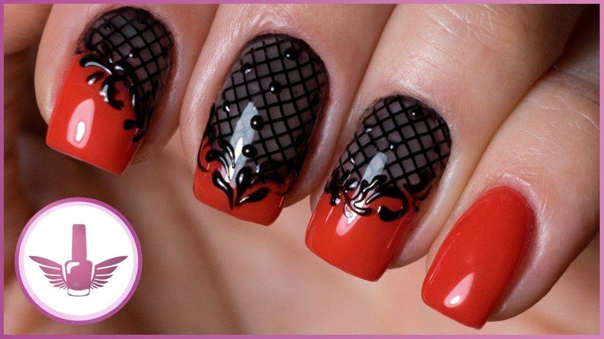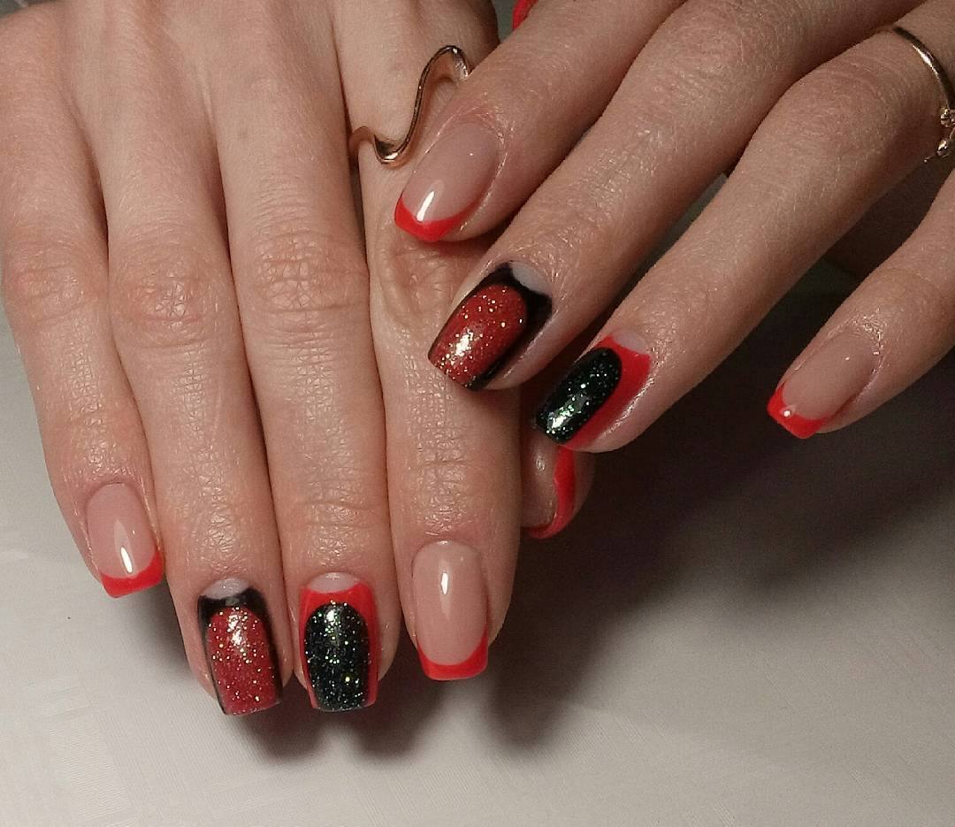 красный маникюр с черным цветом