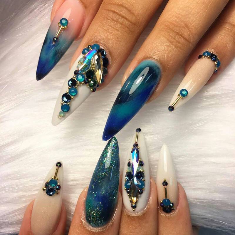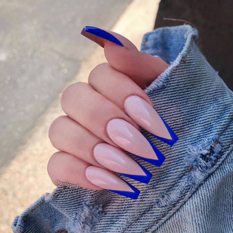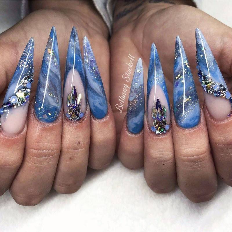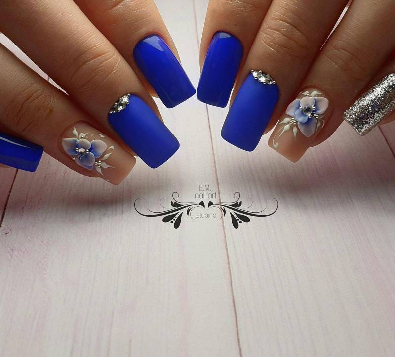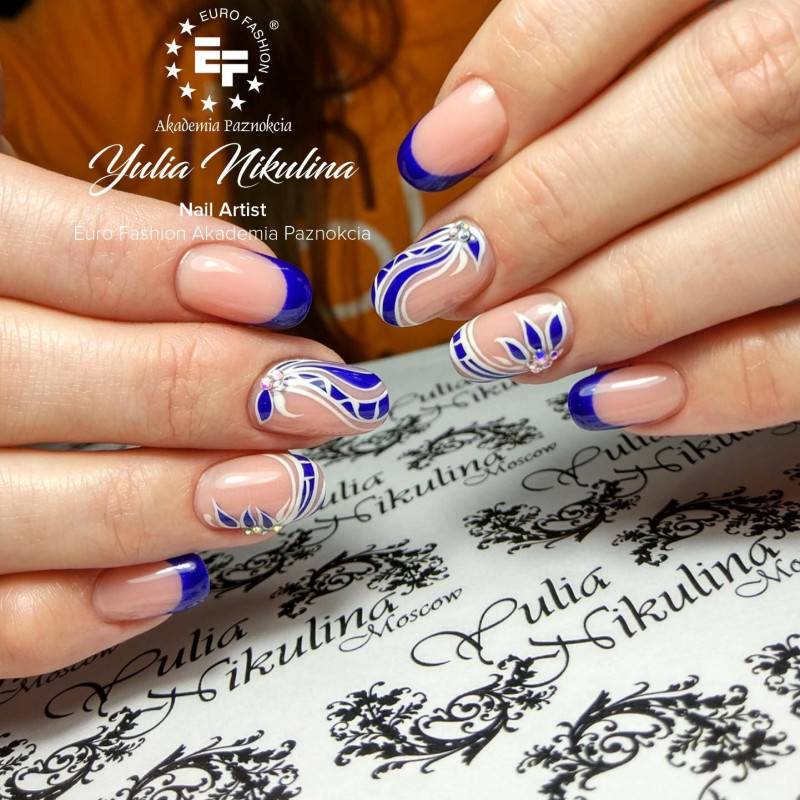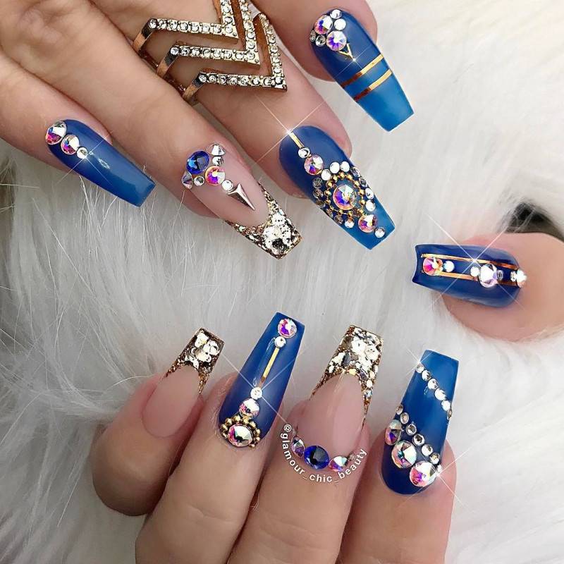 Чтобы почувствовать себя особенной женщиной, мастера маникюра могут предложить вам огромное обилие дизайнерских nаil-решений. Длинные ногти придадут вам стильный и утонченный образ. Для длинных ногтей миндалевидной формы отличным вариантом будет стильный синий френч. Френч из глиттера также смотрится необычно и ярко.