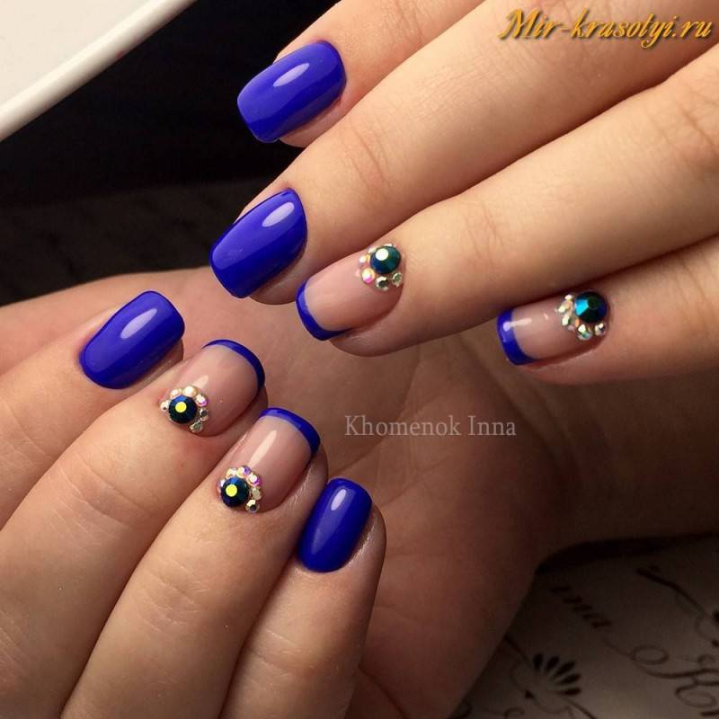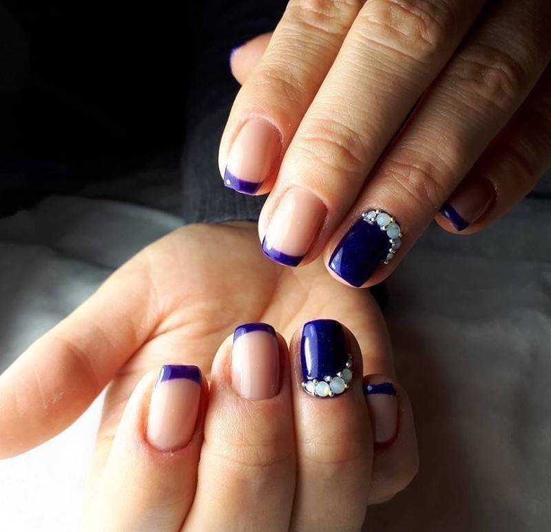 Стильный синий френч – одна из альтернатив другим цветам, при этом для многих он весьма неоднозначный. Если вы отдаете предпочтение темным оттенкам, синий цвет будет удостоен вашего внимания. Выбрав синий французский маникюр, вы увидите на своих ноготках оригинальный и интересный дизайн, который не останется без внимания окружающих!