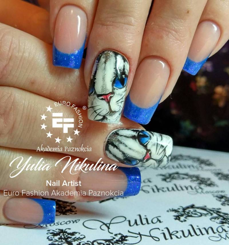 • Животный принт – если говорить конкретно об описываемых цветах, здесь зебровый дизайн будет смотреться наиболее выигрышно с его характерными черно-белыми линиями. Но не лишен смысла и леопардовый окрас, выполненный в подобной цветовой гамме. Это выглядит довольно необычно, но достаточно выразительно и акцентированно.• Кошачьи лапки – простой женский маникюр, более часто употребляемый девушками помоложе, напоминает игру противоположностей в цветах с применением отпечатков лапок проходящей по ноготку миниатюрной кошки. Такие следы добавляют дизайну милашности и умиляют своей непосредственностью.