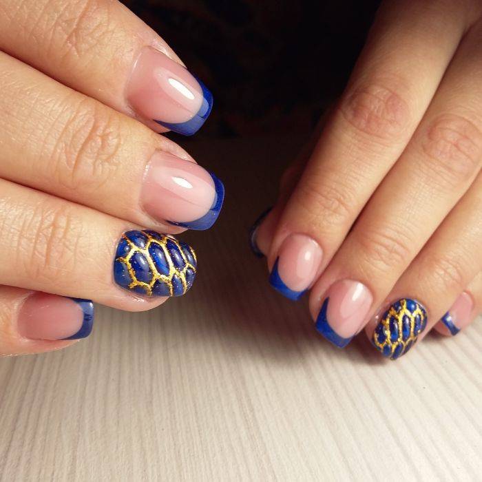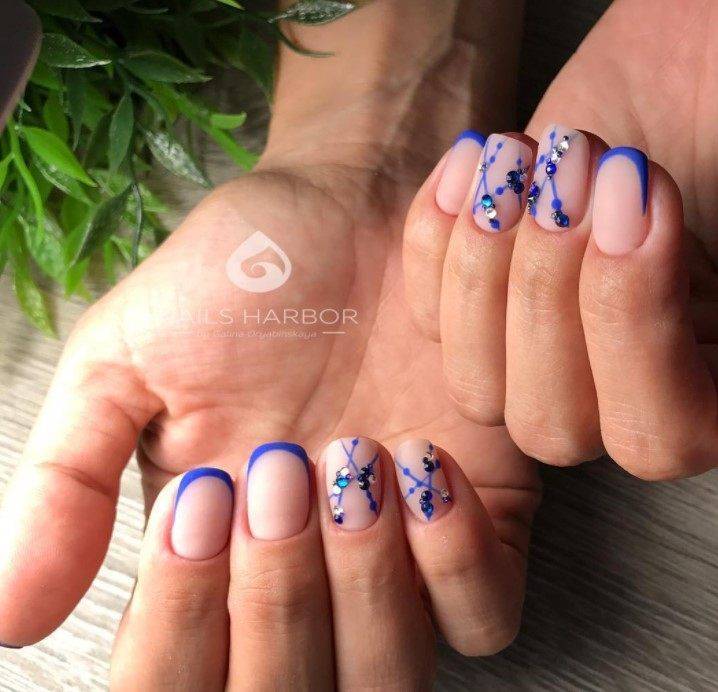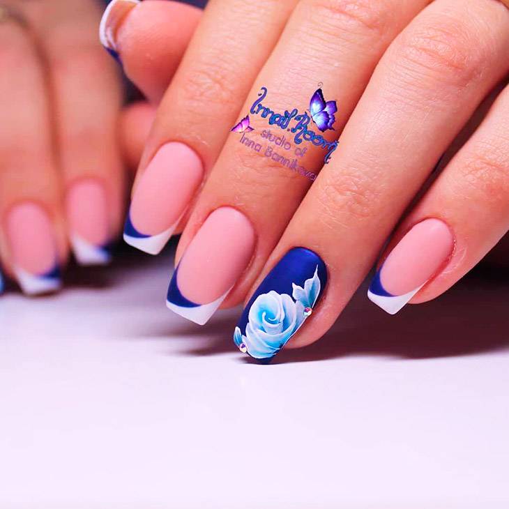 Стильный синий френч – одна из альтернатив другим цветам, при этом для многих он весьма неоднозначный. Если вы отдаете предпочтение темным оттенкам, синий цвет будет удостоен вашего внимания. Выбрав синий французский маникюр, вы увидите на своих ноготках оригинальный и интересный дизайн, который не останется без внимания окружающих!