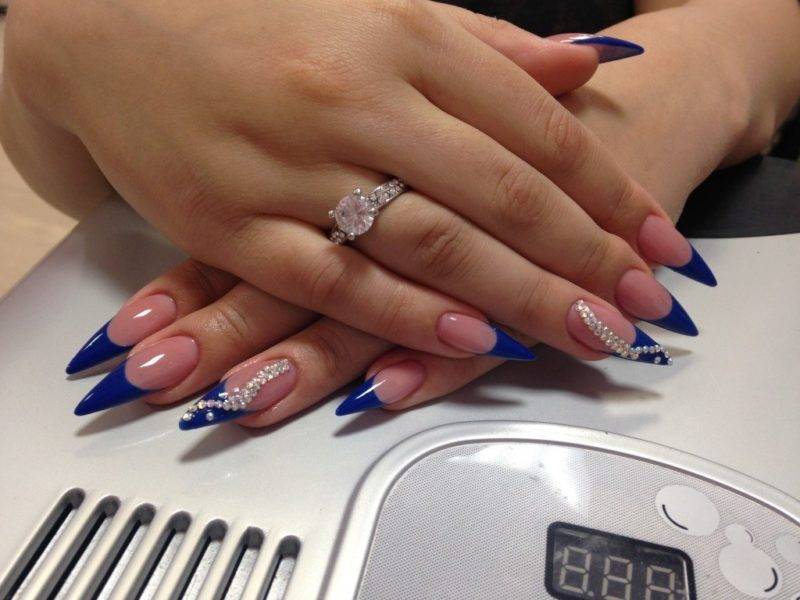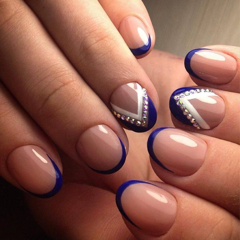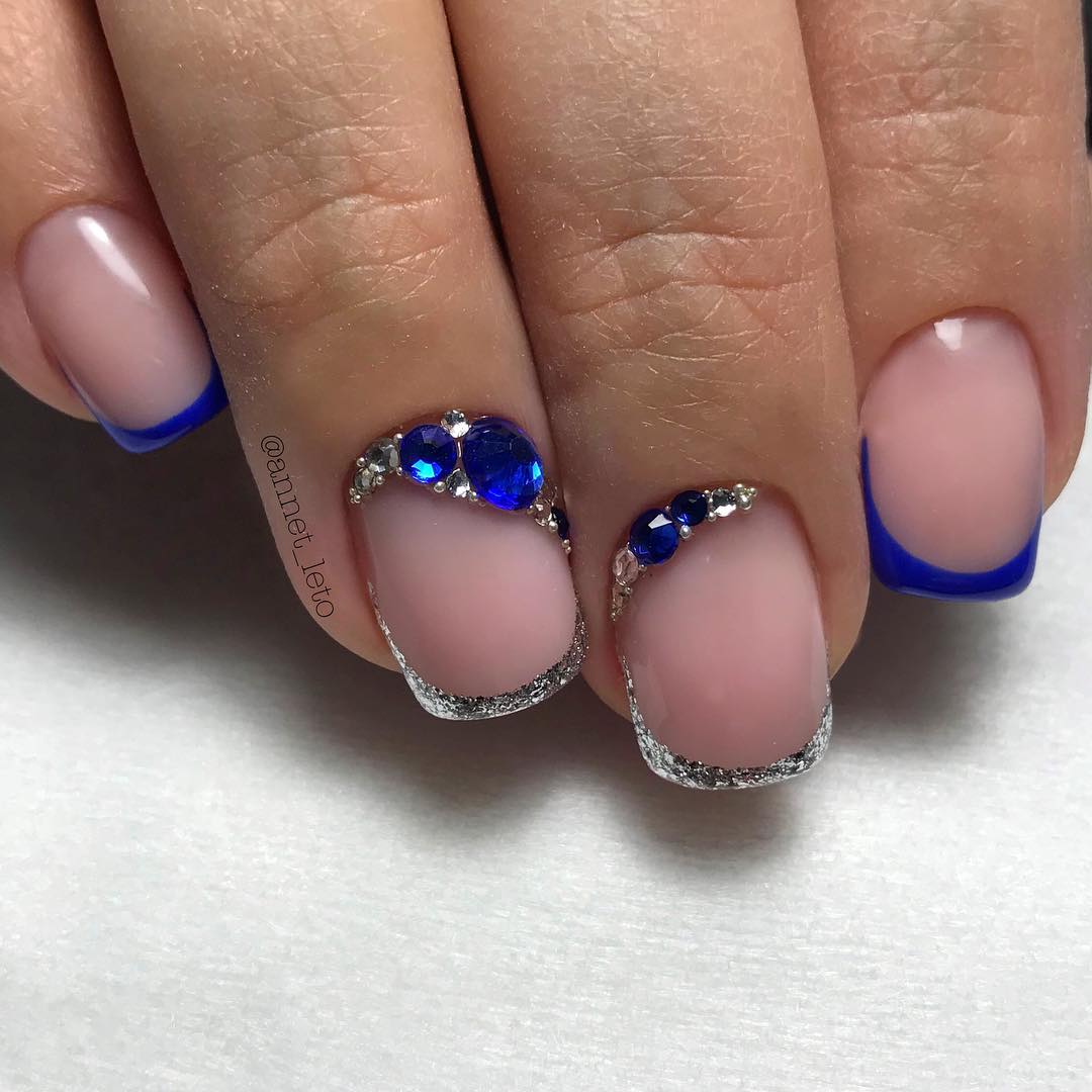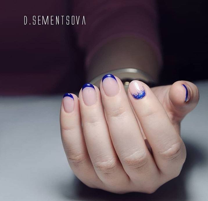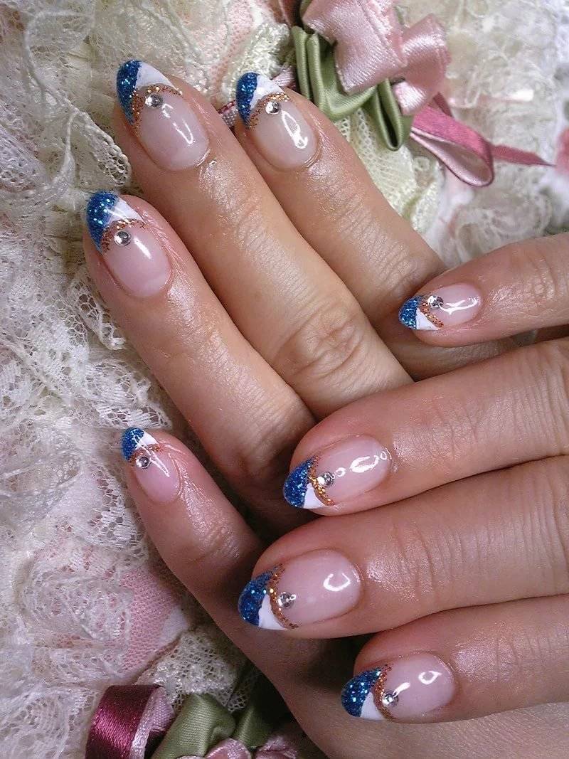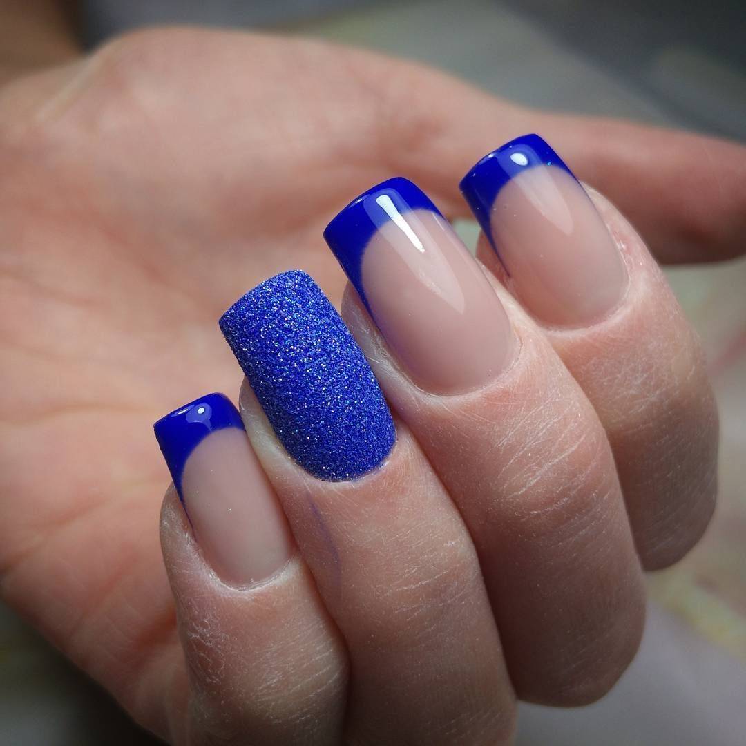 Чтобы почувствовать себя особенной женщиной, мастера маникюра могут предложить вам огромное обилие дизайнерских nаil-решений. Длинные ногти придадут вам стильный и утонченный образ. Для длинных ногтей миндалевидной формы отличным вариантом будет стильный синий френч. Френч из глиттера также смотрится необычно и ярко.