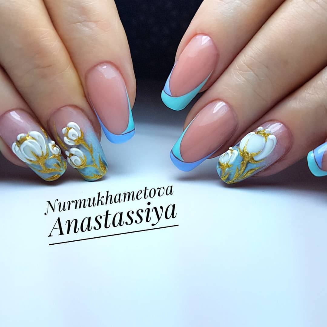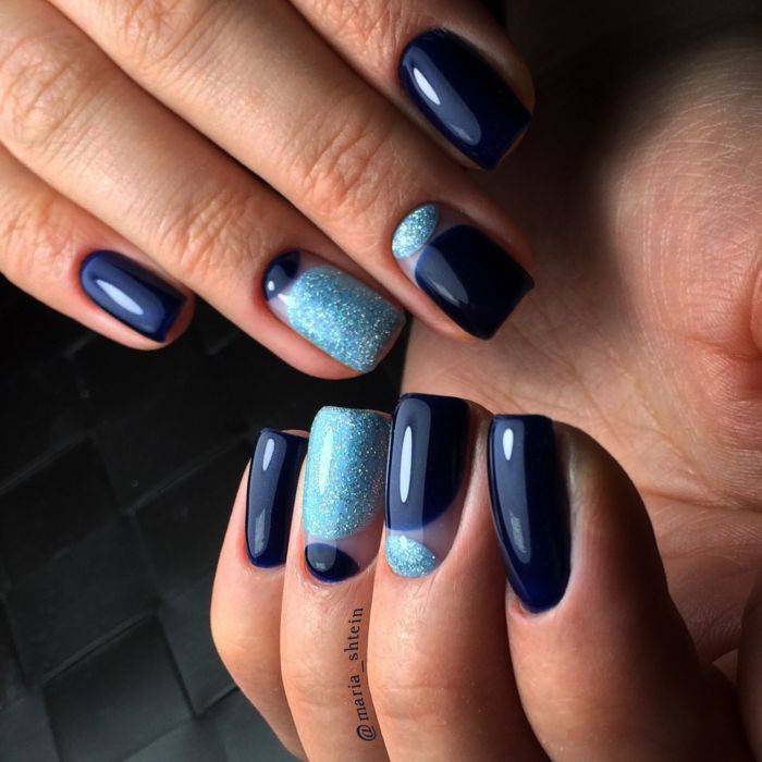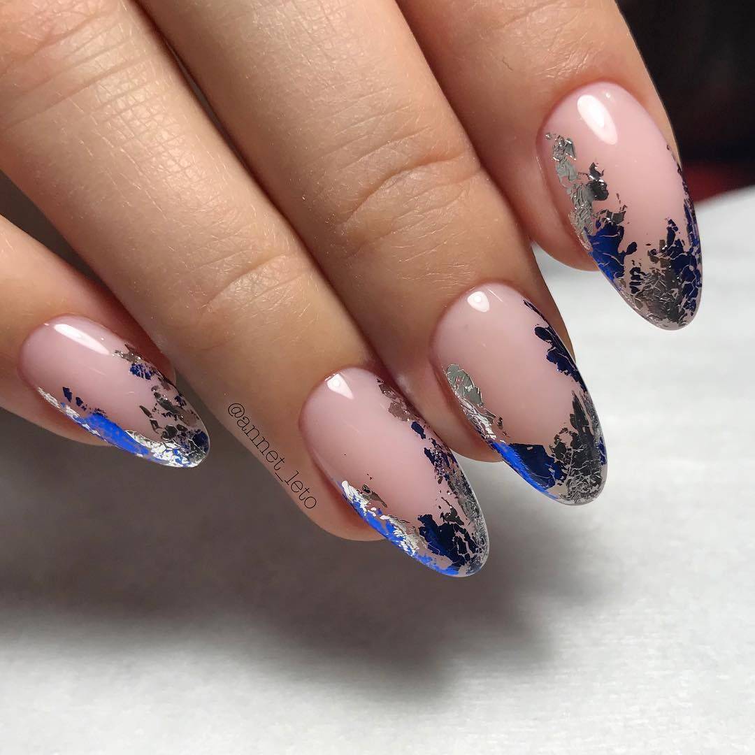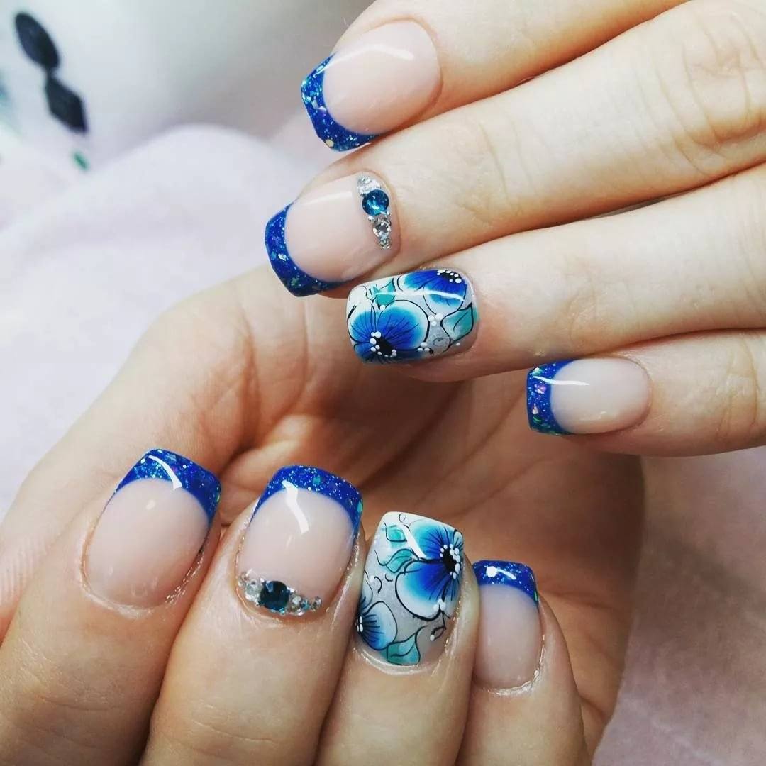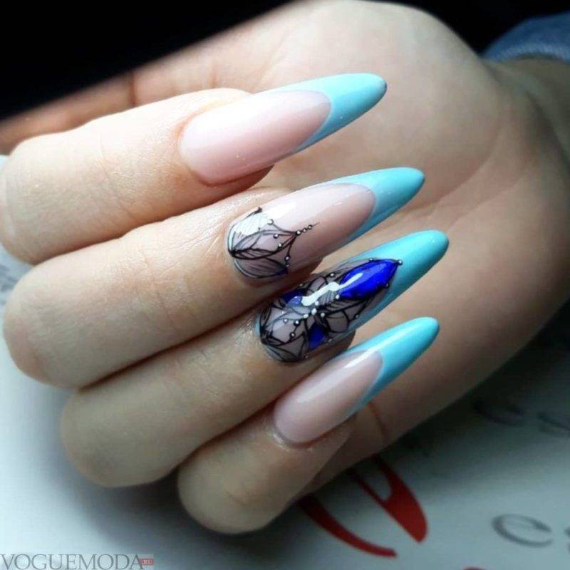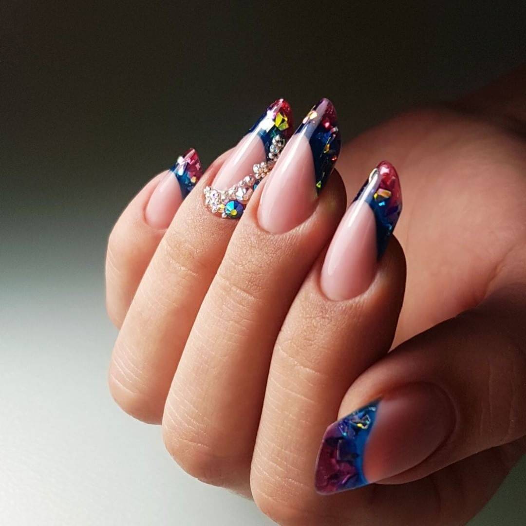 Чтобы почувствовать себя особенной женщиной, мастера маникюра могут предложить вам огромное обилие дизайнерских nаil-решений. Длинные ногти придадут вам стильный и утонченный образ. Для длинных ногтей миндалевидной формы отличным вариантом будет стильный синий френч. Френч из глиттера также смотрится необычно и ярко.