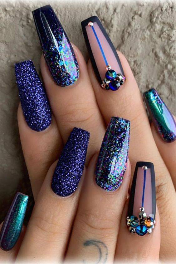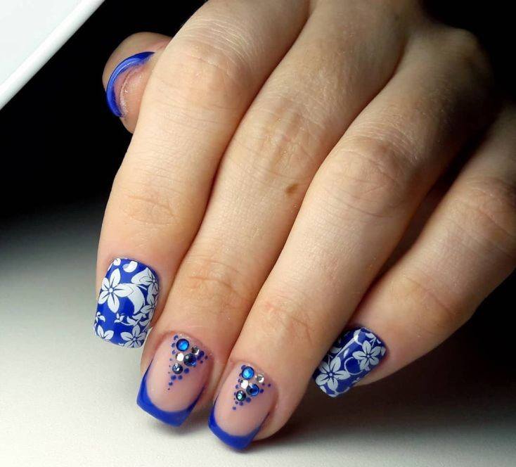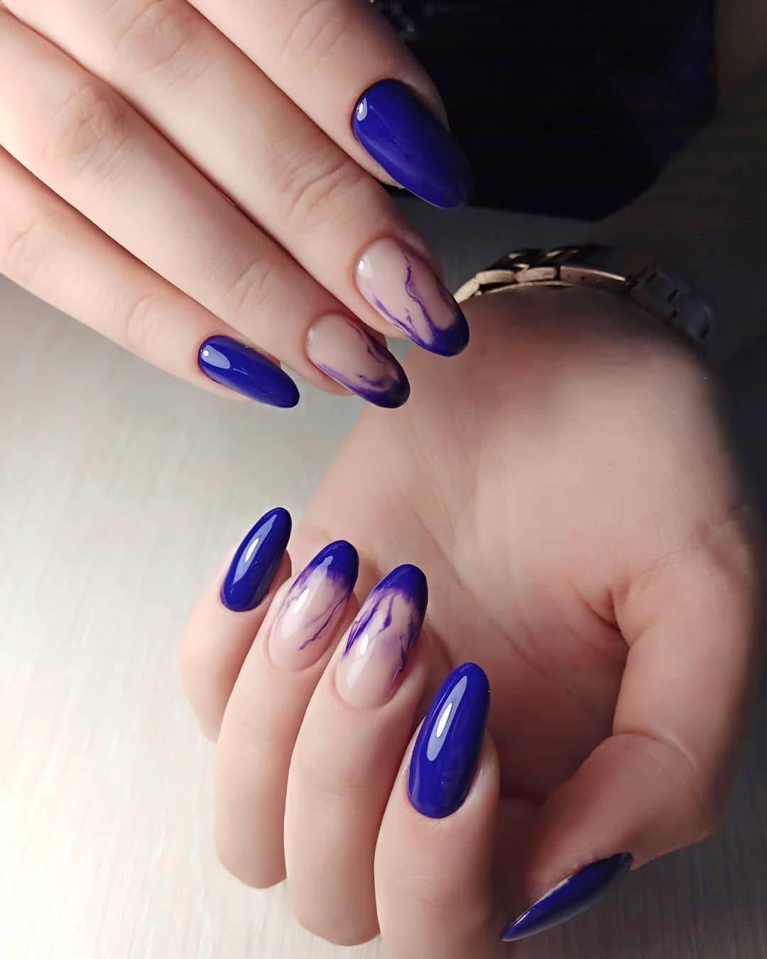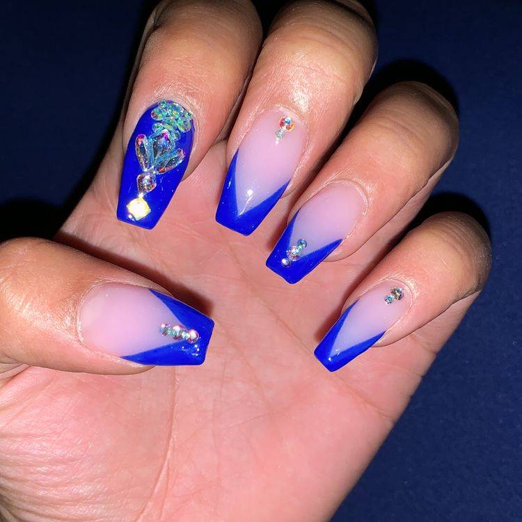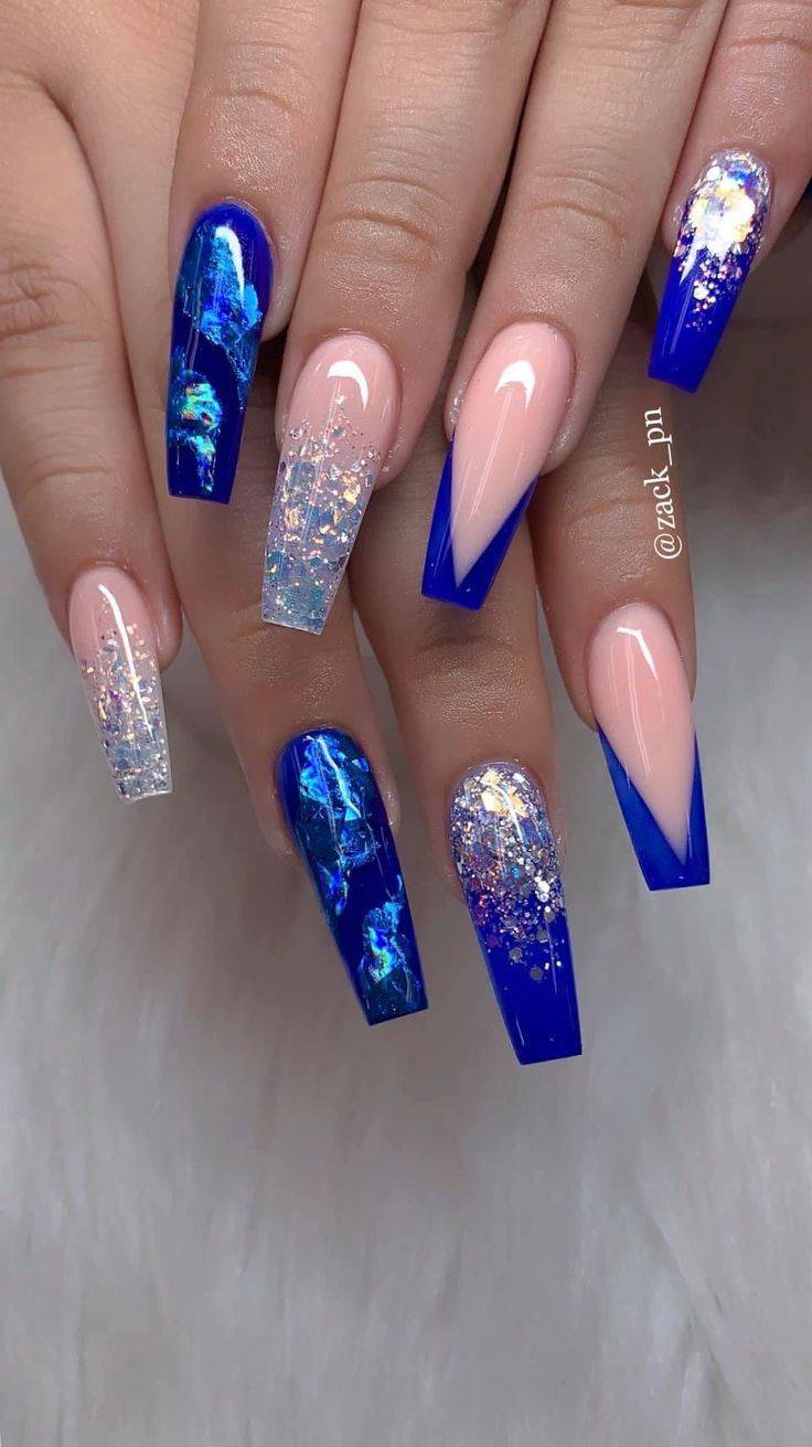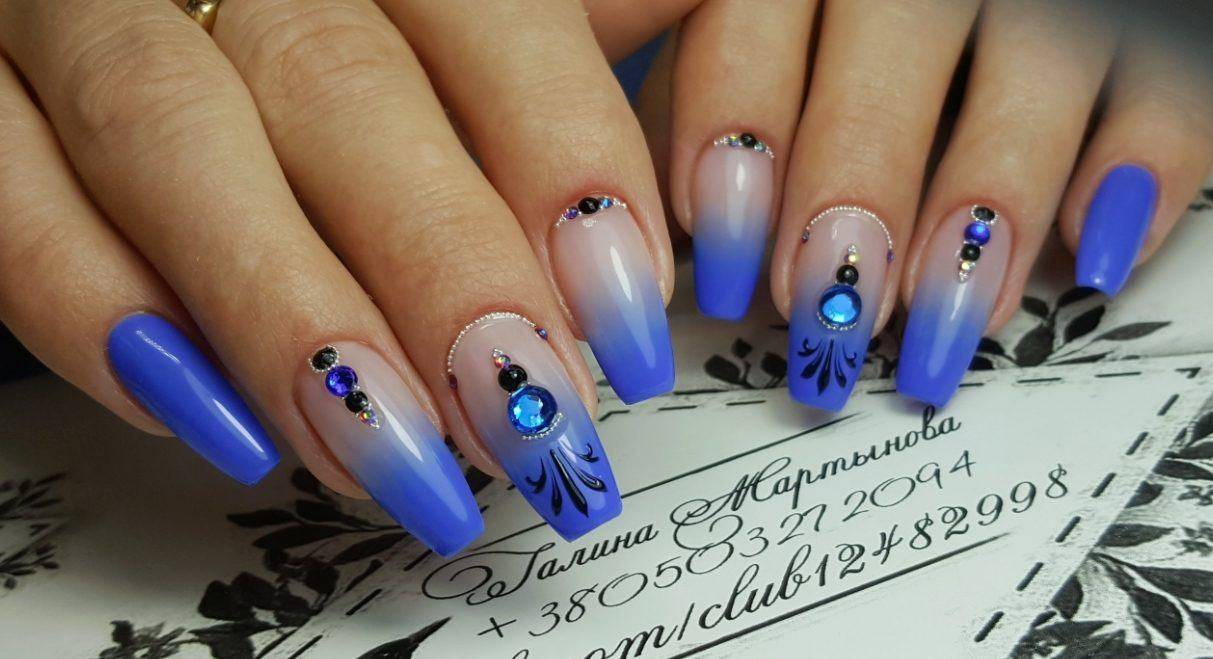 Чтобы почувствовать себя особенной женщиной, мастера маникюра могут предложить вам огромное обилие дизайнерских nаil-решений. Длинные ногти придадут вам стильный и утонченный образ. Для длинных ногтей миндалевидной формы отличным вариантом будет стильный синий френч. Френч из глиттера также смотрится необычно и ярко.