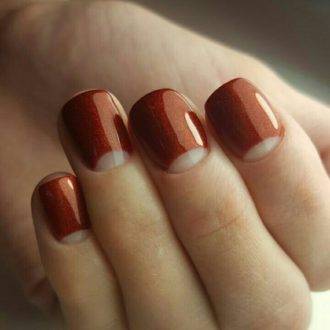 - Хороший вариант – это однотонное глянцевое или матовое покрытие, а также маникюр французский с тонкой белой «улыбкой».