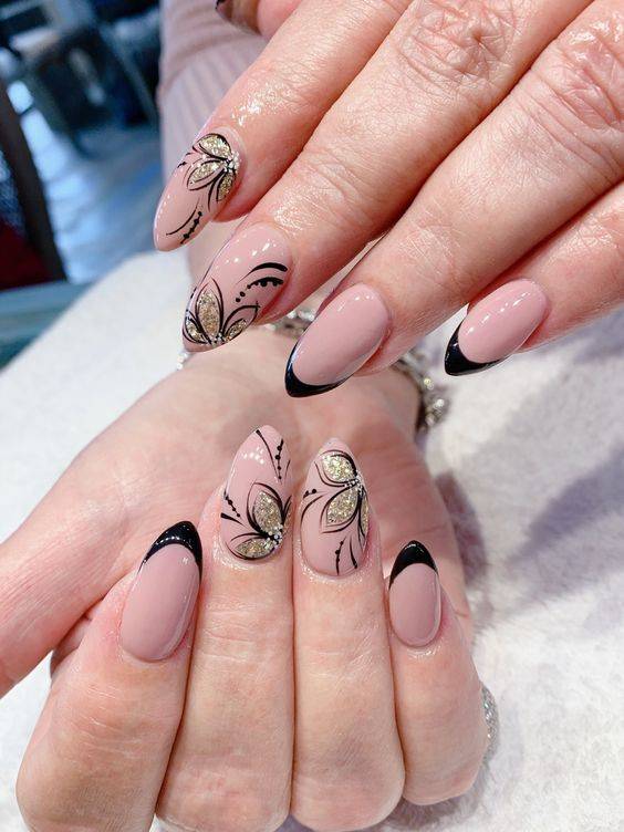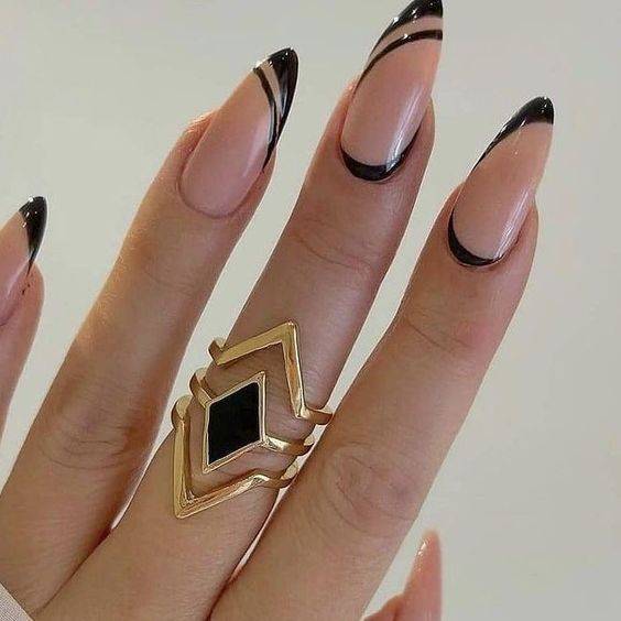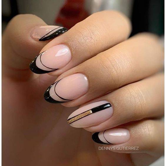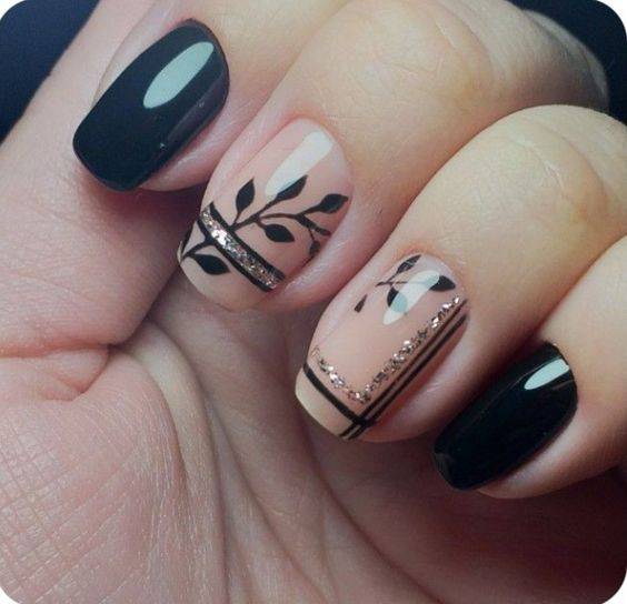 Ни один цвет не сочетается с золотом так, как это делает чёрный. Его смысл — воплощённая роскошь. Для исполнения можно выбрать любую технику. Подходит смелым и решительным особам с объективным запросом. Подобный маникюр способен завершить самый яркий образ.