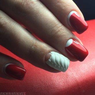 В нём используется несколько схожих тонов с разными текстурами, в том числе и омбре. Комбинированный делают шеллаком, но вероятны и яркие варианты. Например, красный с розовым или малиновым.