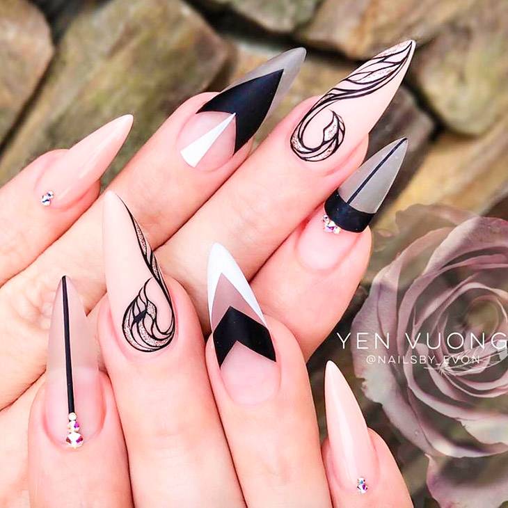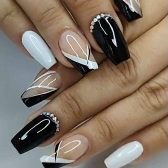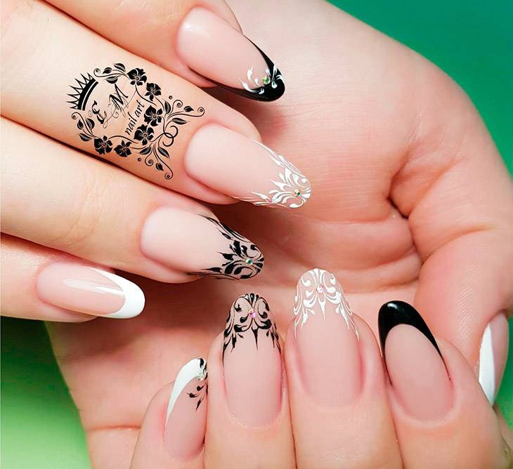 Черно-белый маникюр на длинные ногти: фото-новинки сезона 2021-2022